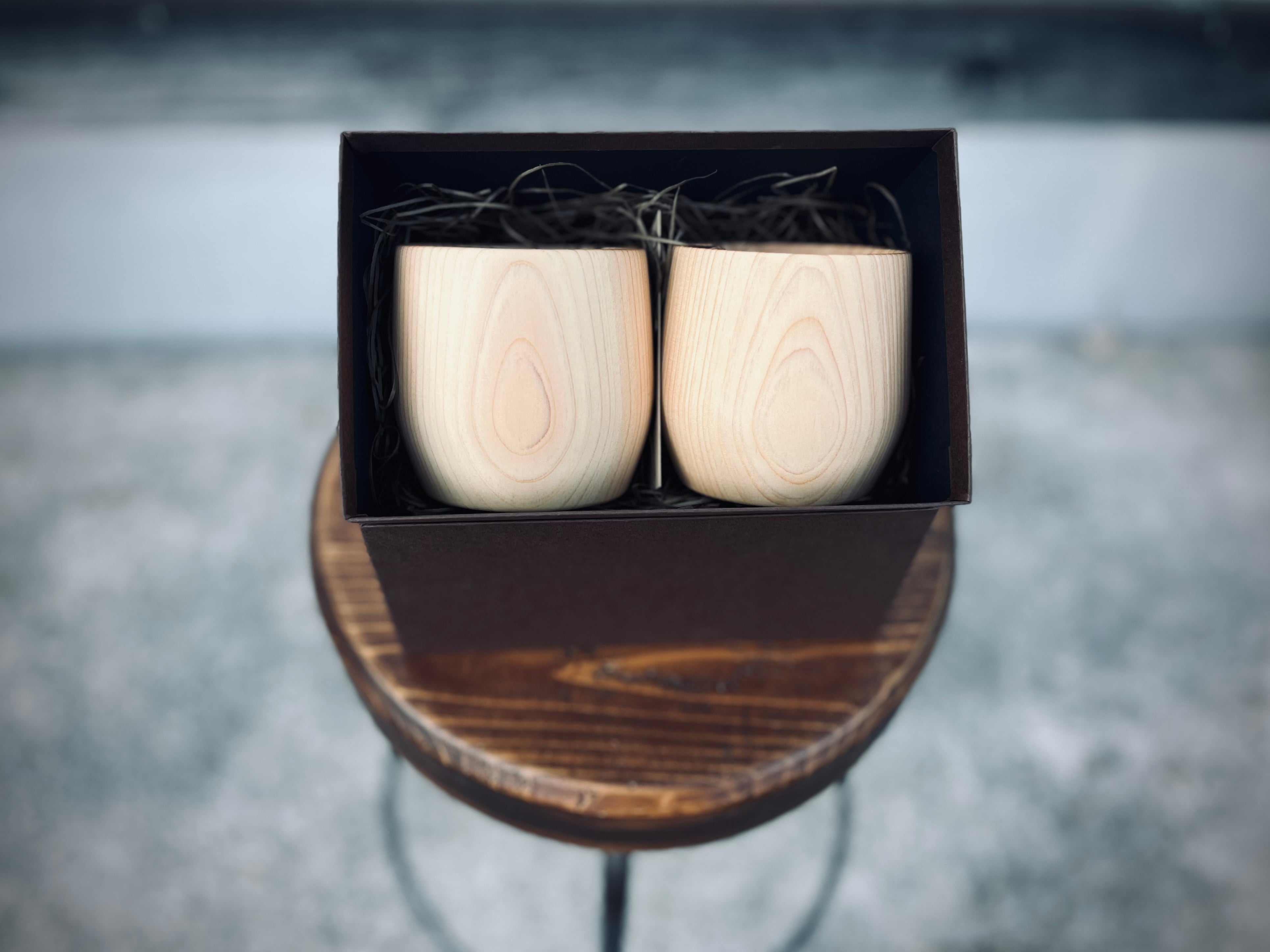 岡山県真庭市産ヒノキのロックグラスペア