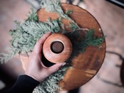 地元産ヒノキを使い木工ろくろで一つ一つ丁寧に削り出しています。