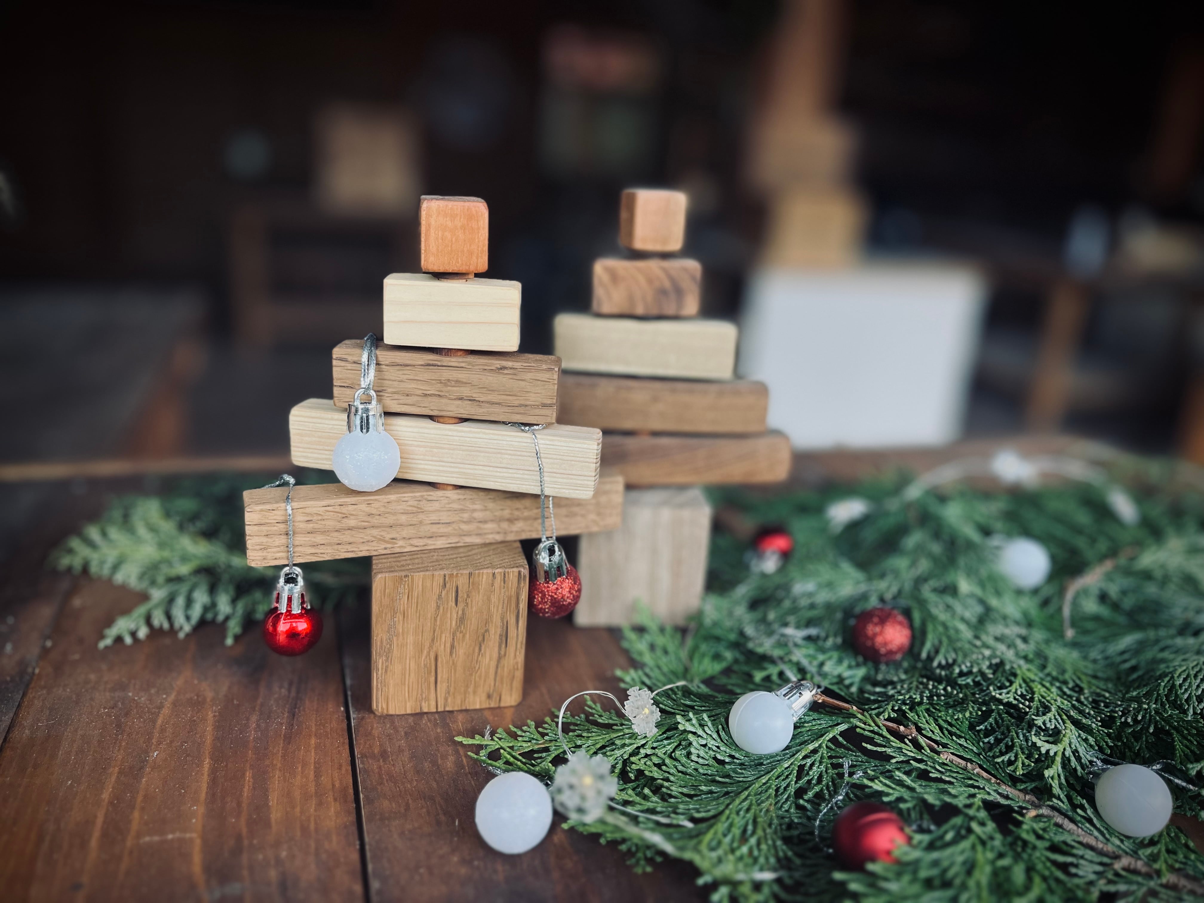 ツリー部分の木製パーツ4個(ヒノキとコナラ)