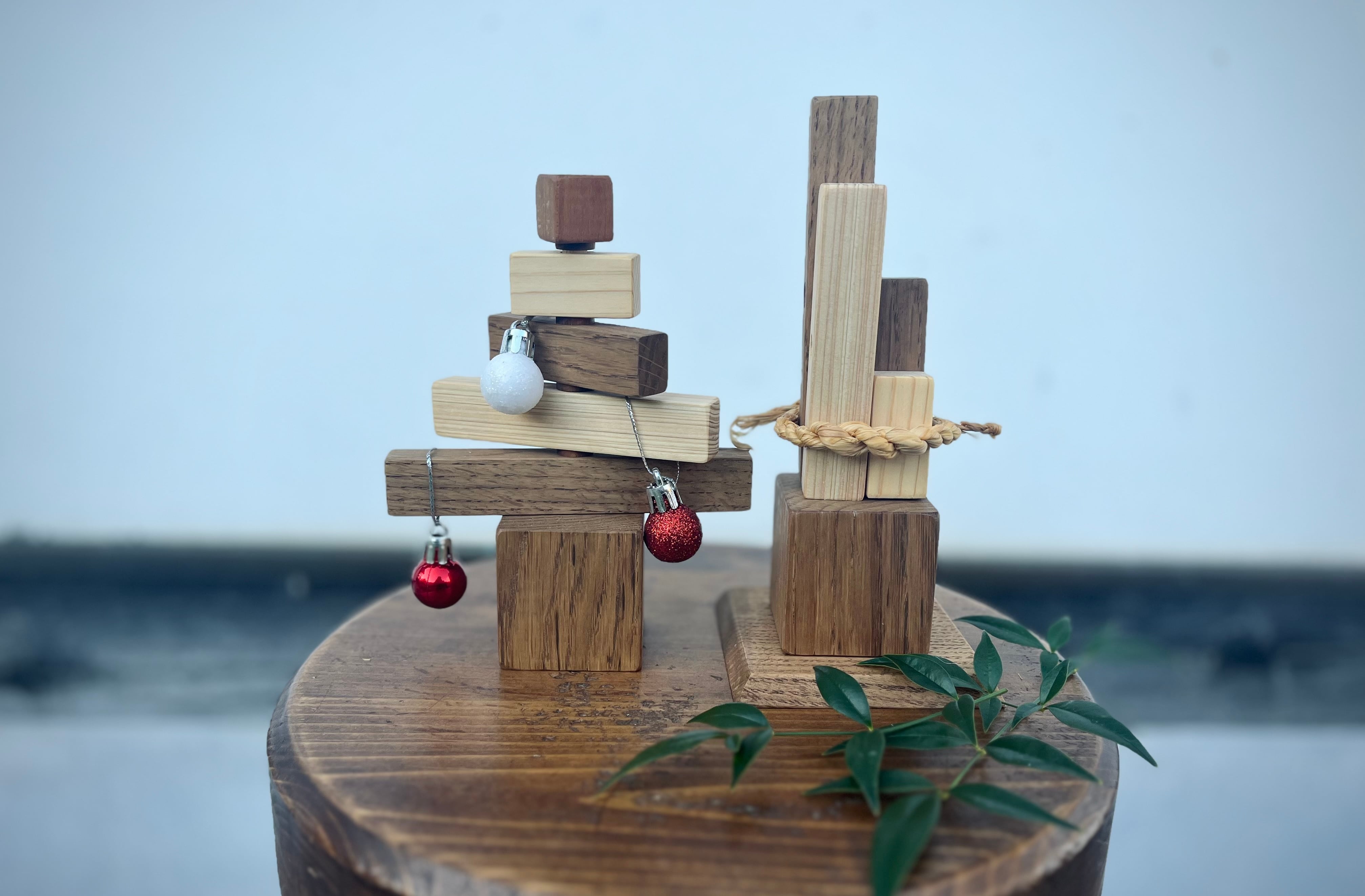 ツリー部分の木製パーツ4個(ヒノキとコナラ)