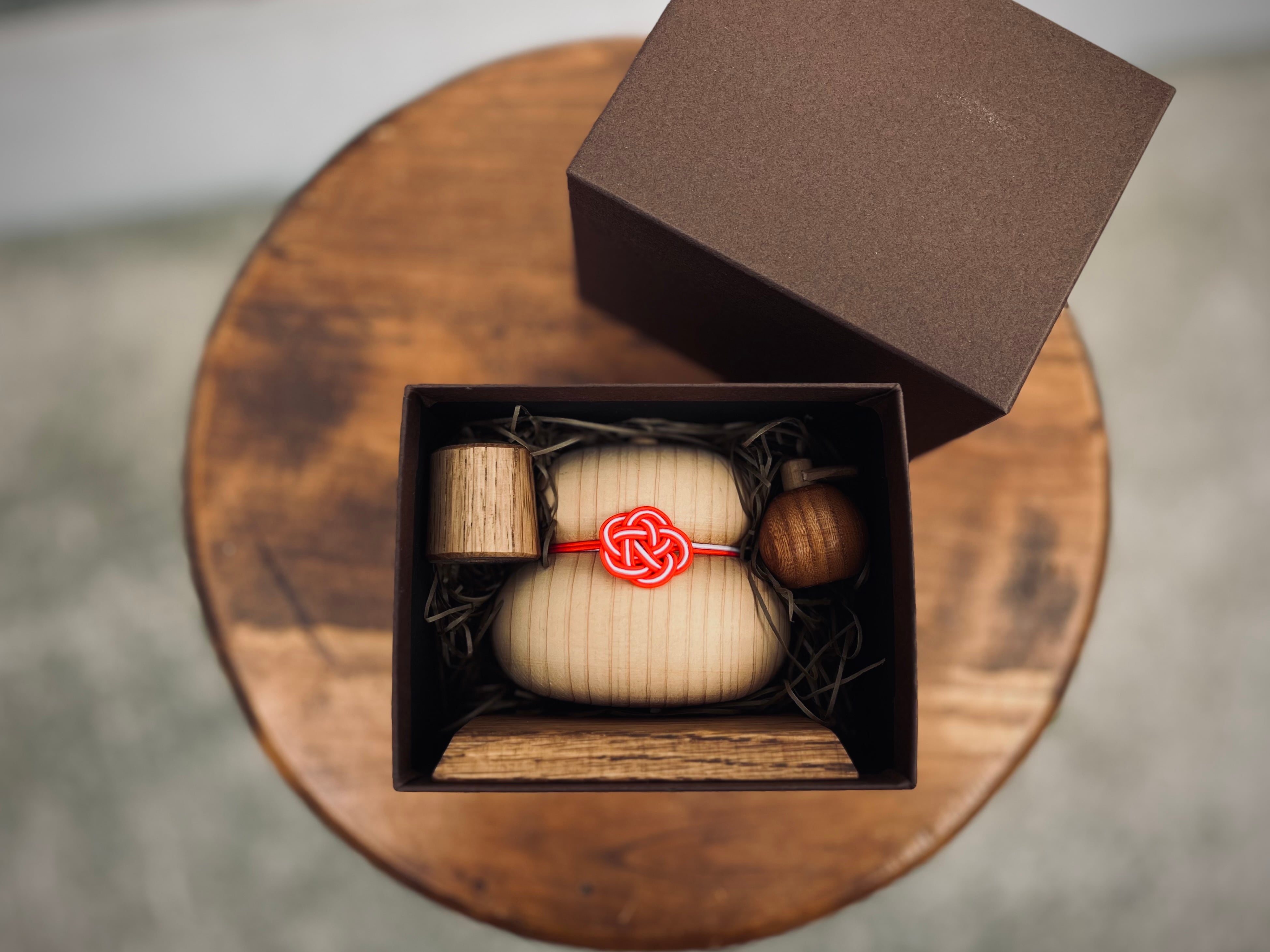 台座は、個性豊かな真庭市産広葉樹、ナラ、クリ、サクラ、ブナ、カエデ、ケヤキ、ムク、イヌシデ、セン等をランダムにお入れします。